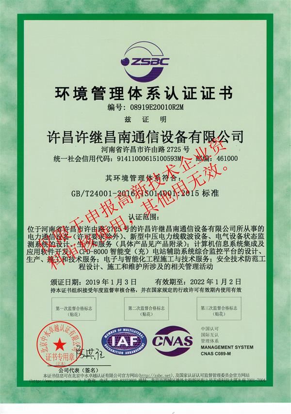 環(huán)境管理體系認(rèn)證證書