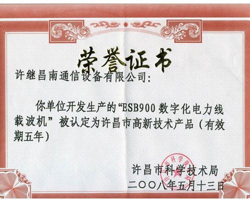 ESB900高新技術(shù)榮譽(yù)證書