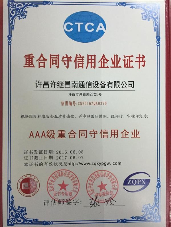 重合同守信用企業(yè)證書